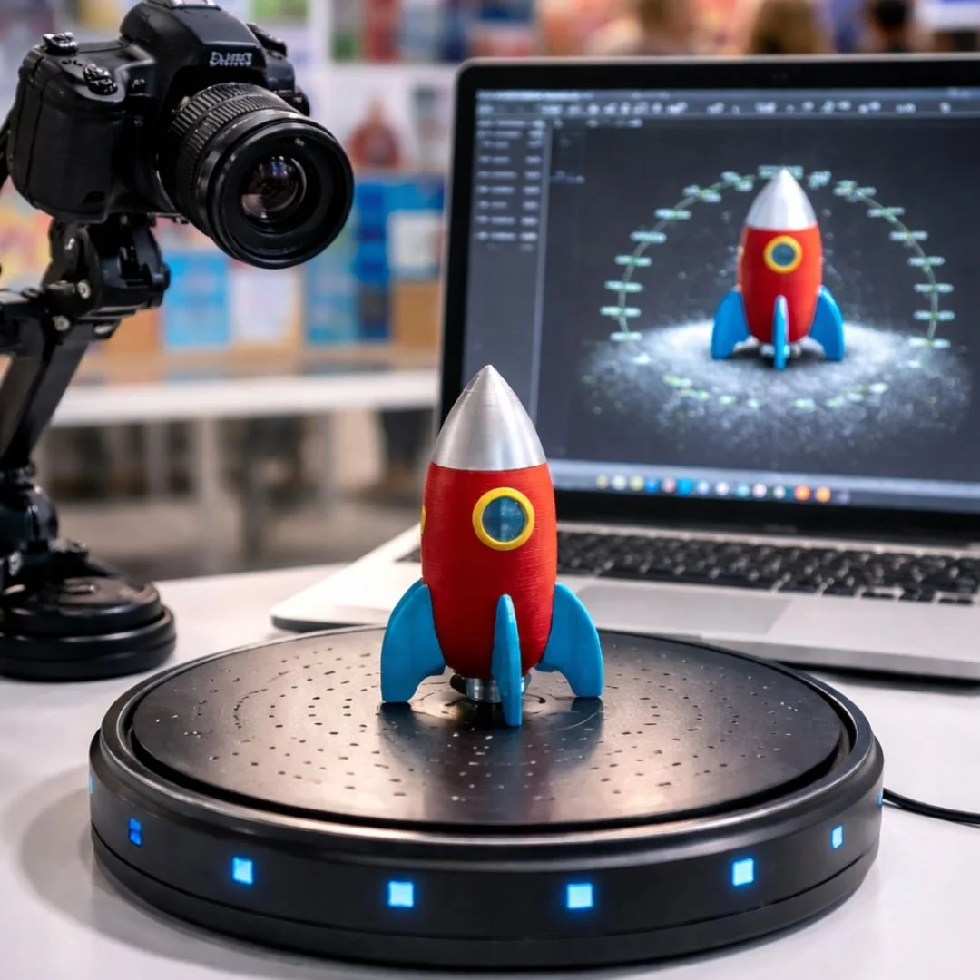 Leg een object op de scanner en zie het live veranderen in een digitaal 3D-model. Neem je eigen scan mee naar huis als mini-digitale trofee.